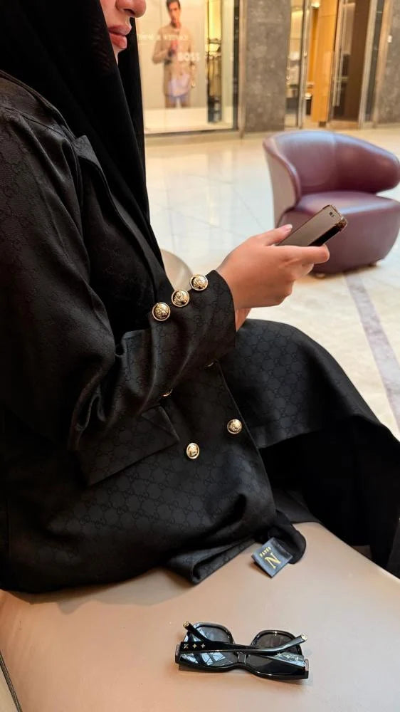 عباية بليزر خام جاكار بتصميم عصري يعكس الفخامة والرقي. صُنعت من خام الجاكار قوتشي الفاخر المميز بنقشته الراقية،