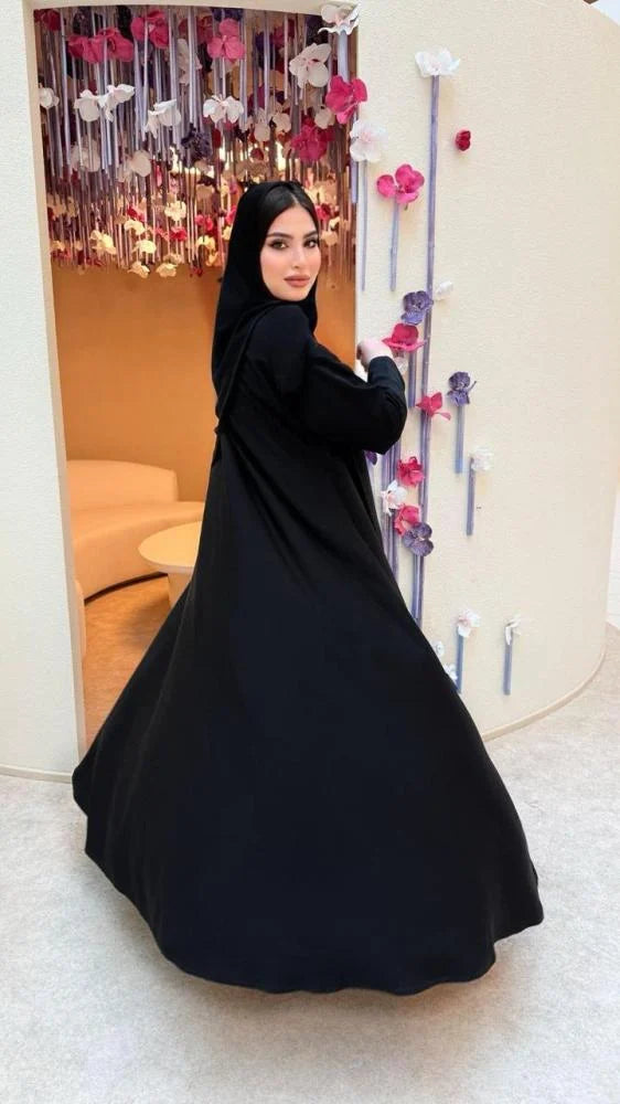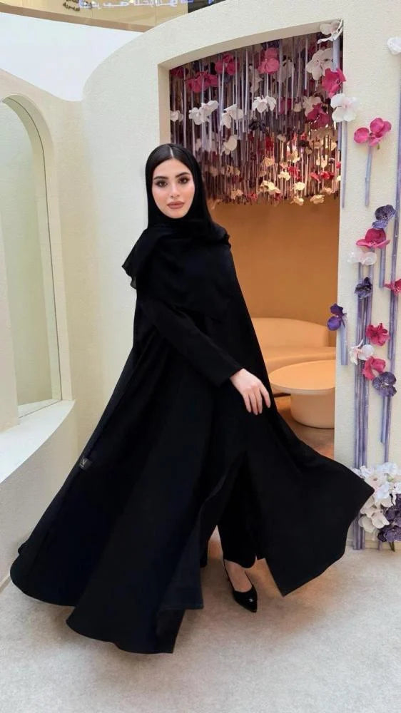 عباية كريب صالونا كوري من أجمل الخيارات التي تمنحك إطلالة أنيقة ومميزة. تأتي العباية بخامة الكريب الصالون الكوري الأصلي المعروف بنعومته وانسيابيته، كما أن تصميمها الواسع والدبل كلوش يضفي لمسة فخامة وراحة مثالية عند الارتداء.