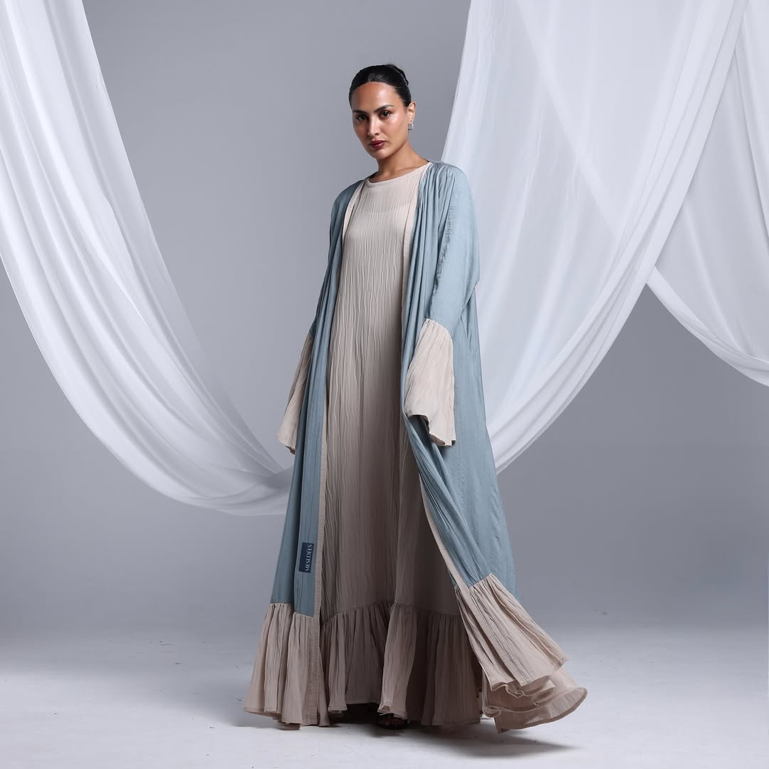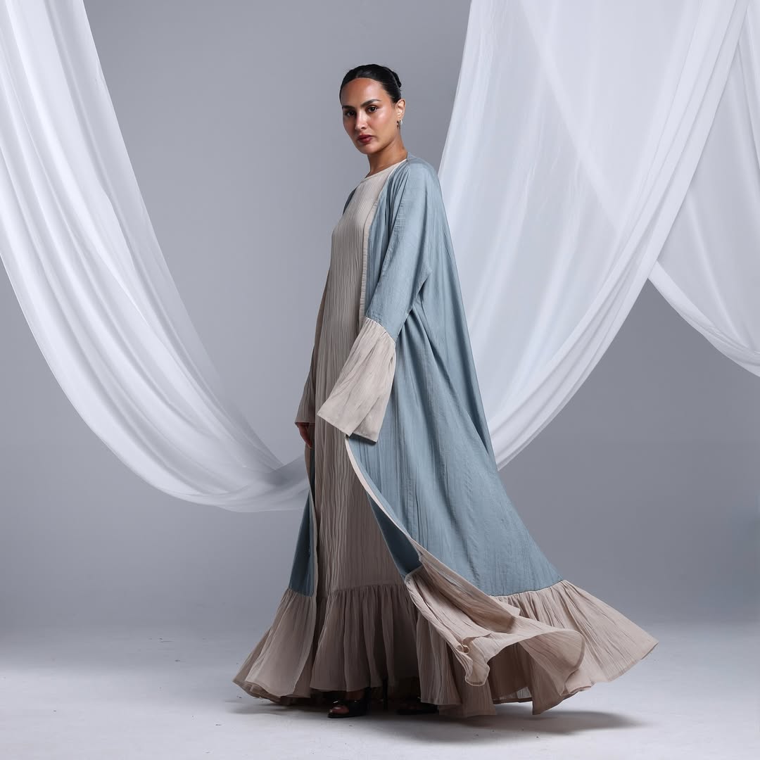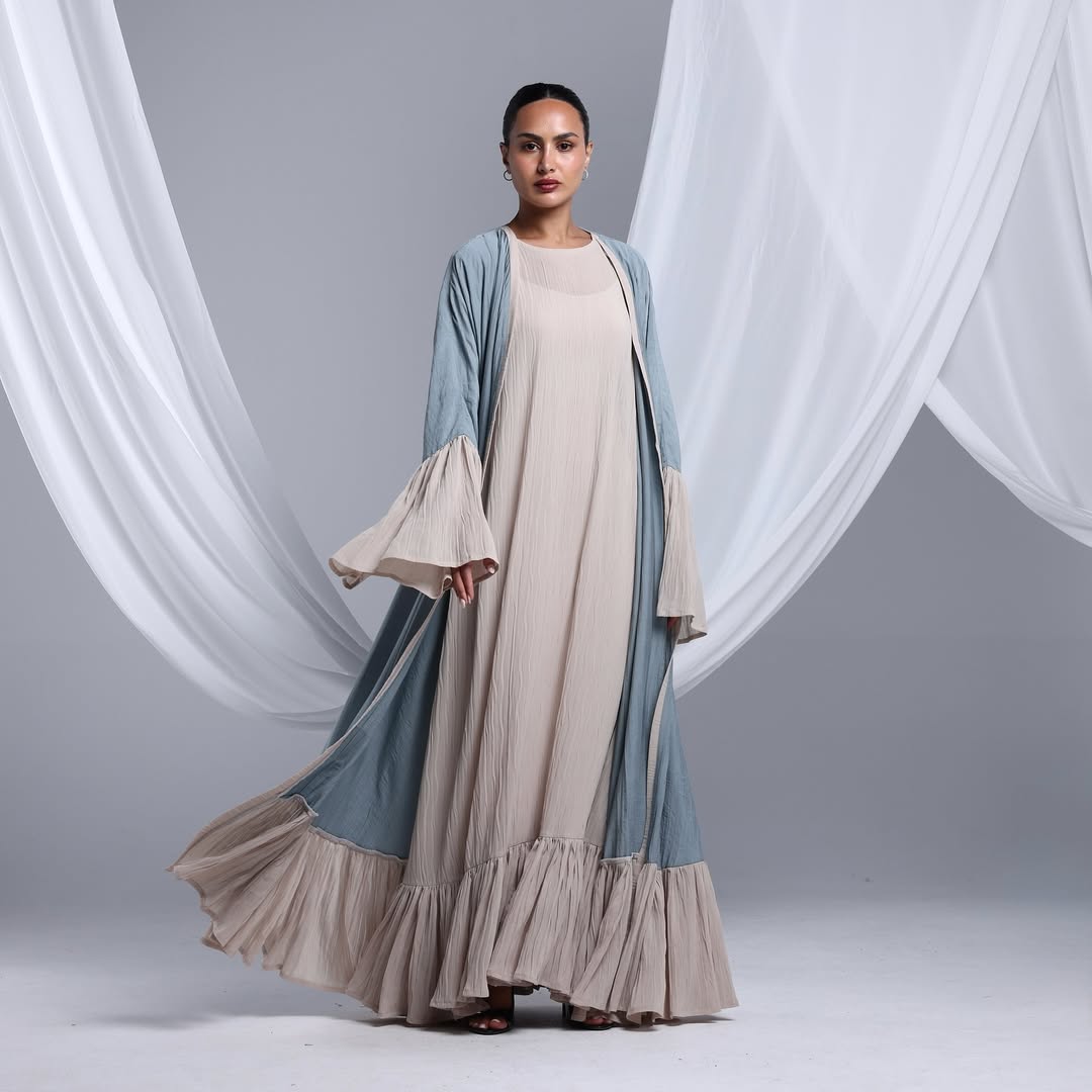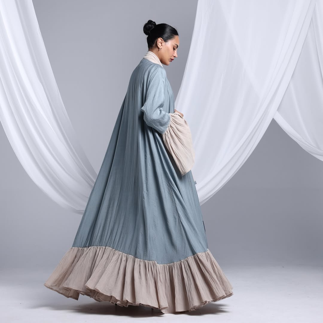 Flowy Ruffled Linen Abaya — عباية لينن انسيابية بحواف متموّجة