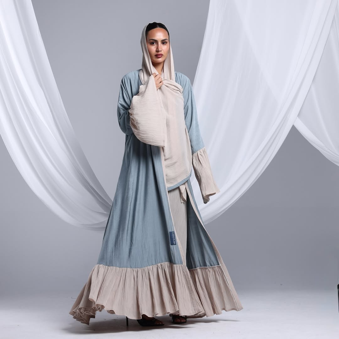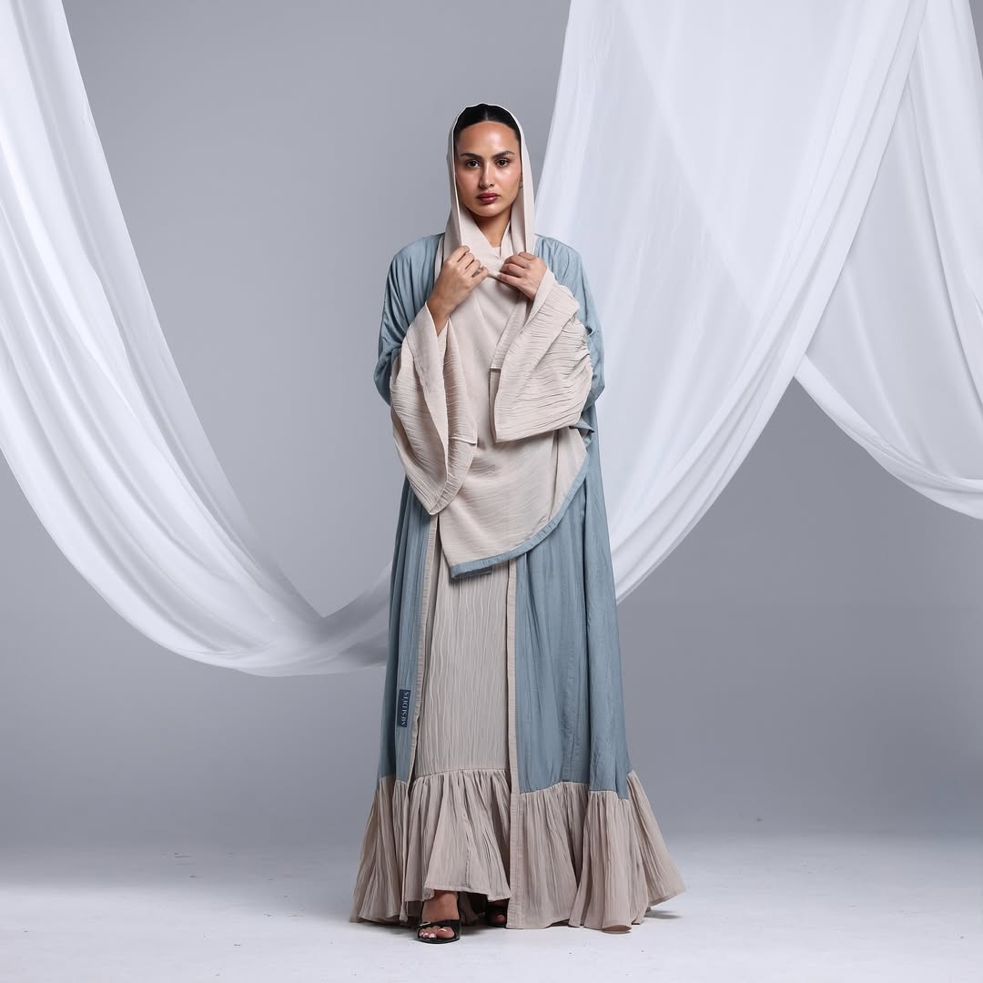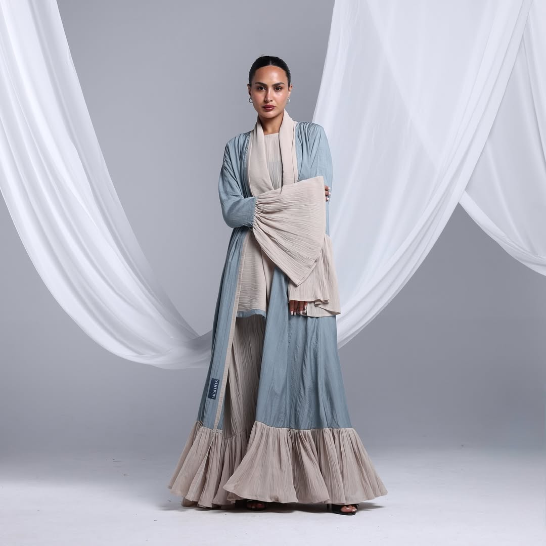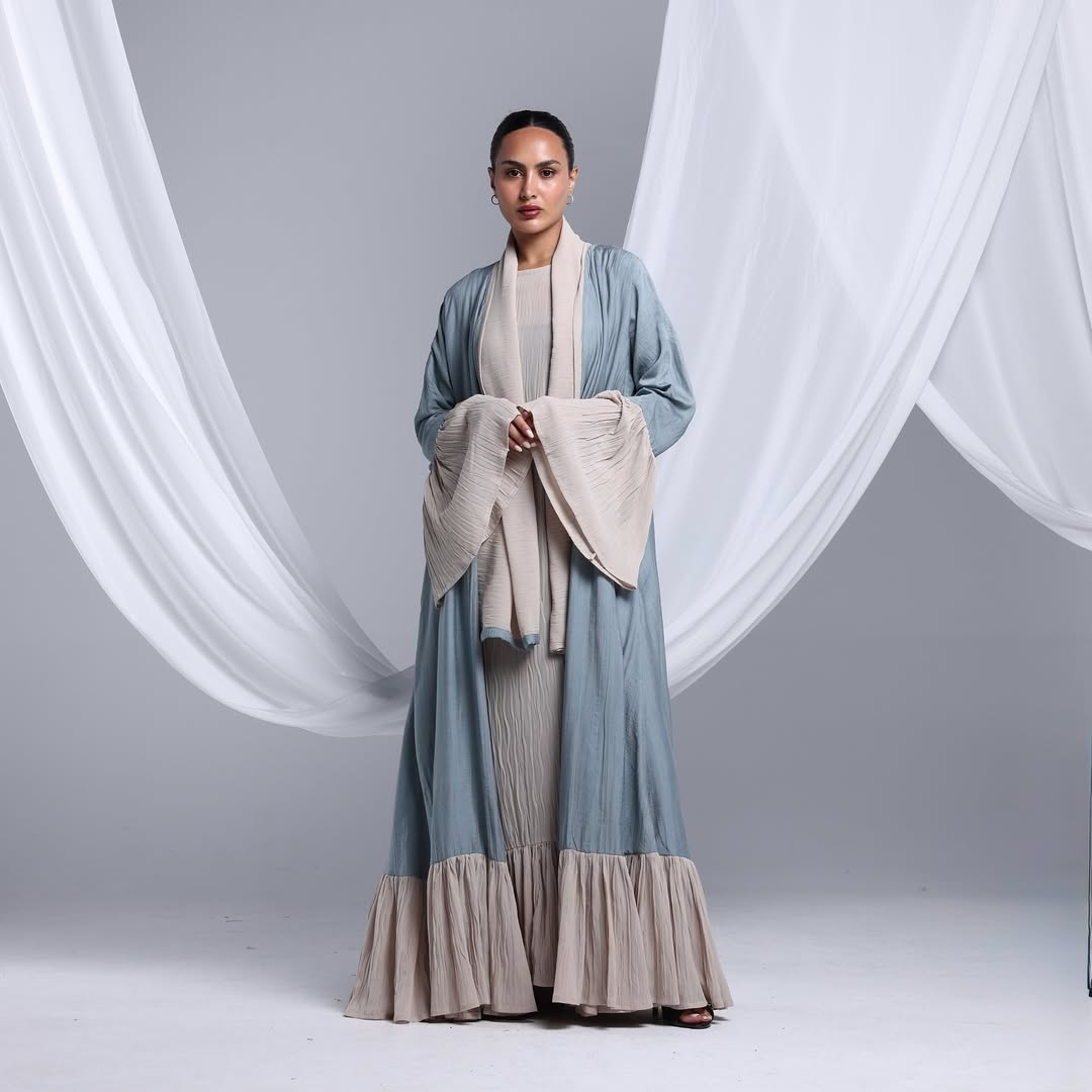 Flowy Ruffled Linen Abaya — عباية لينن انسيابية بحواف متموّجة