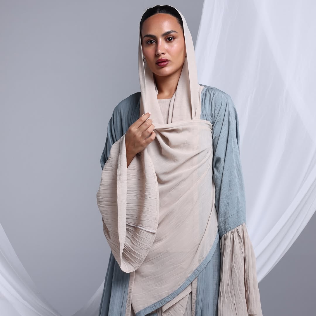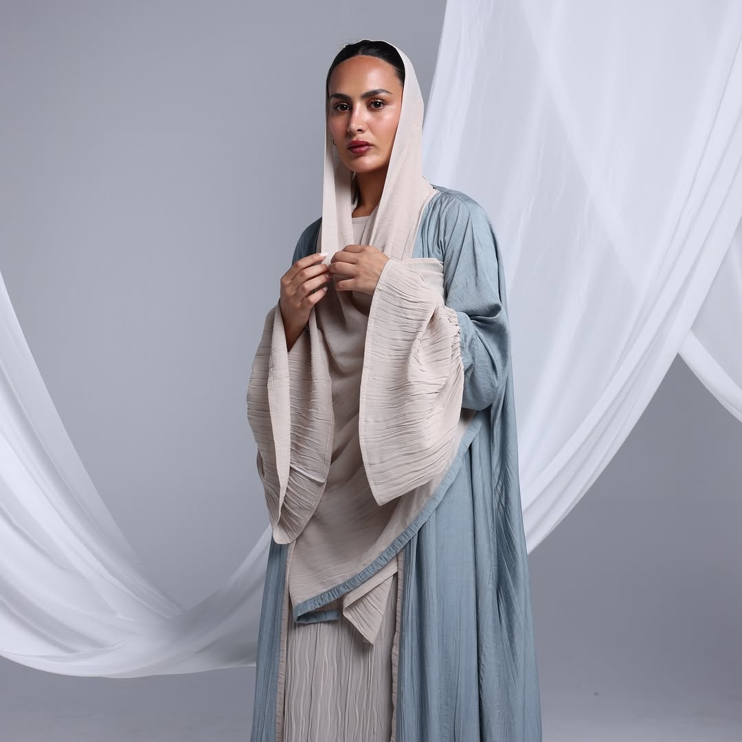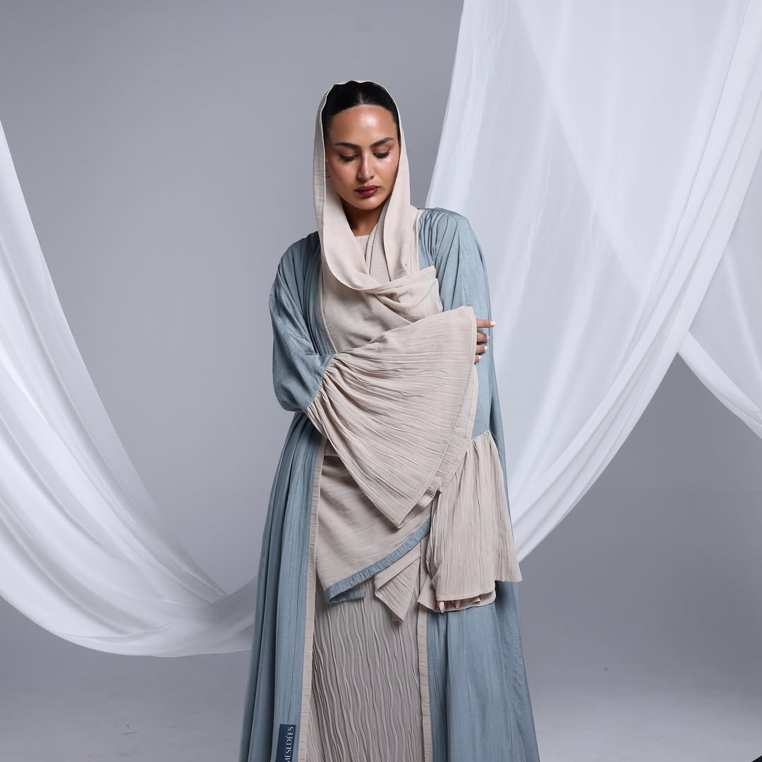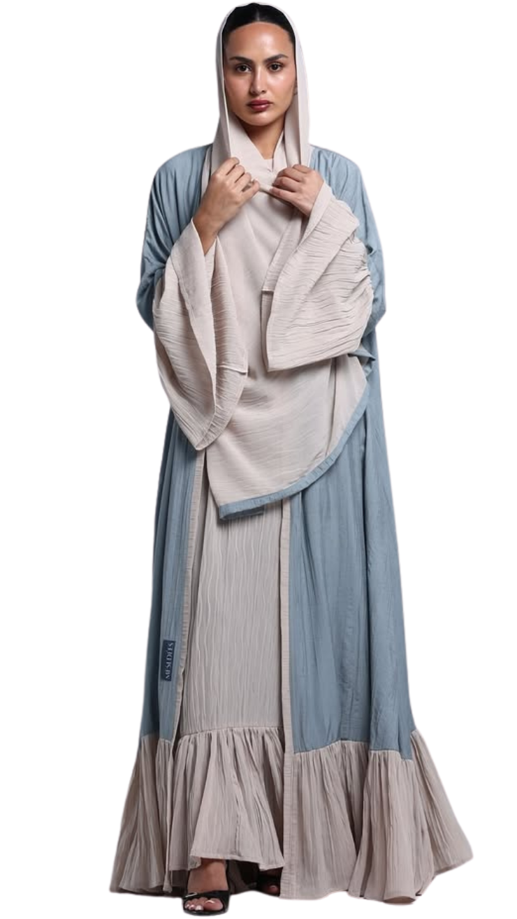 Flowy Ruffled Linen Abaya — عباية لينن انسيابية بحواف متموّجة