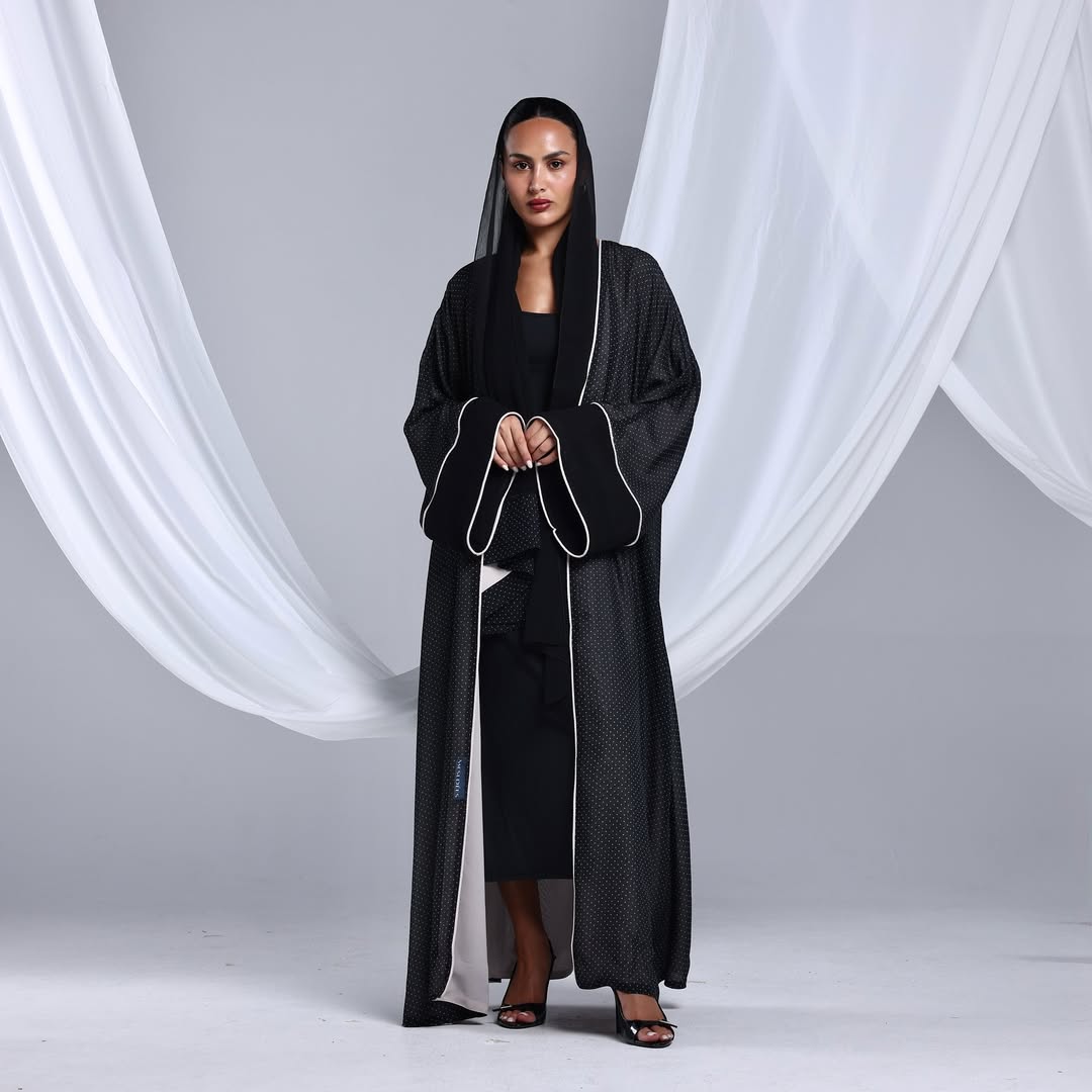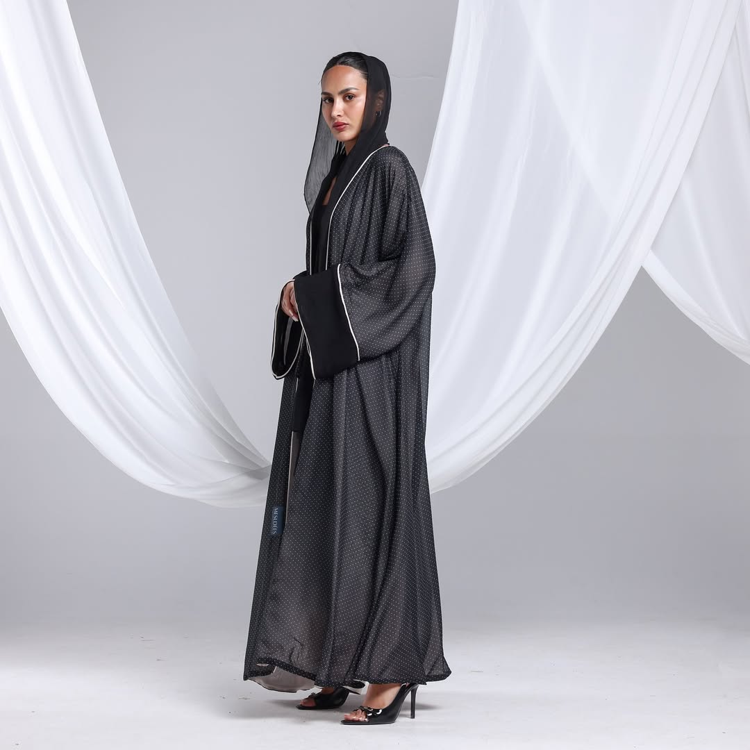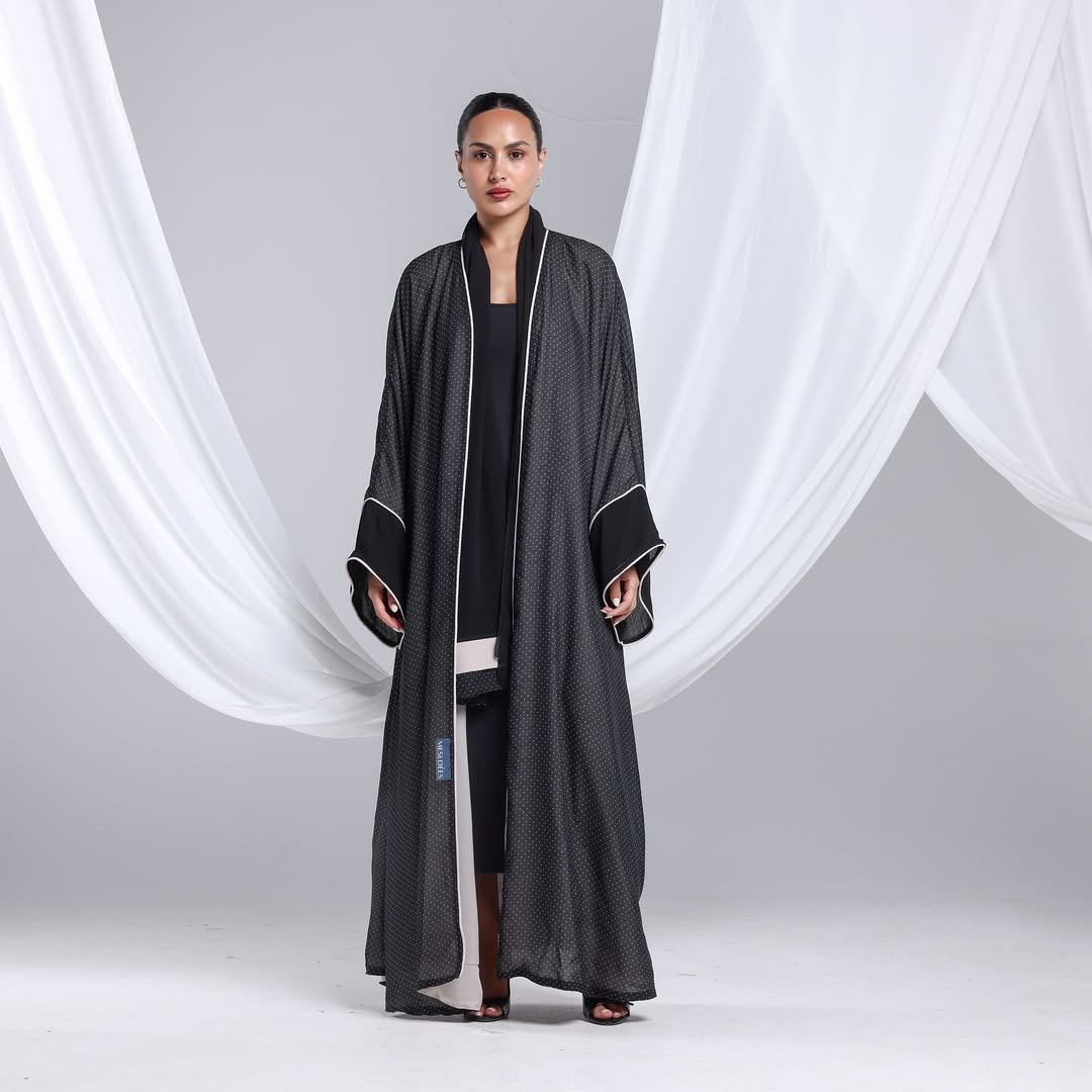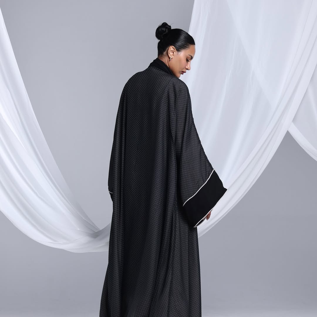 Minimalist Polka Dots Abaya — عباية سوداء بنقشة نقاط ناعمة