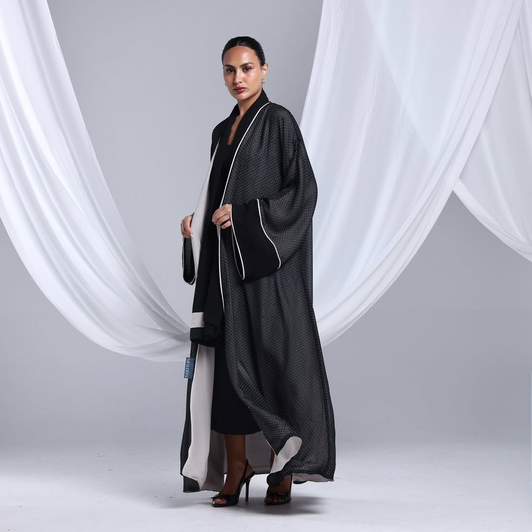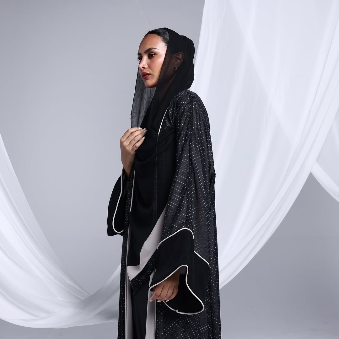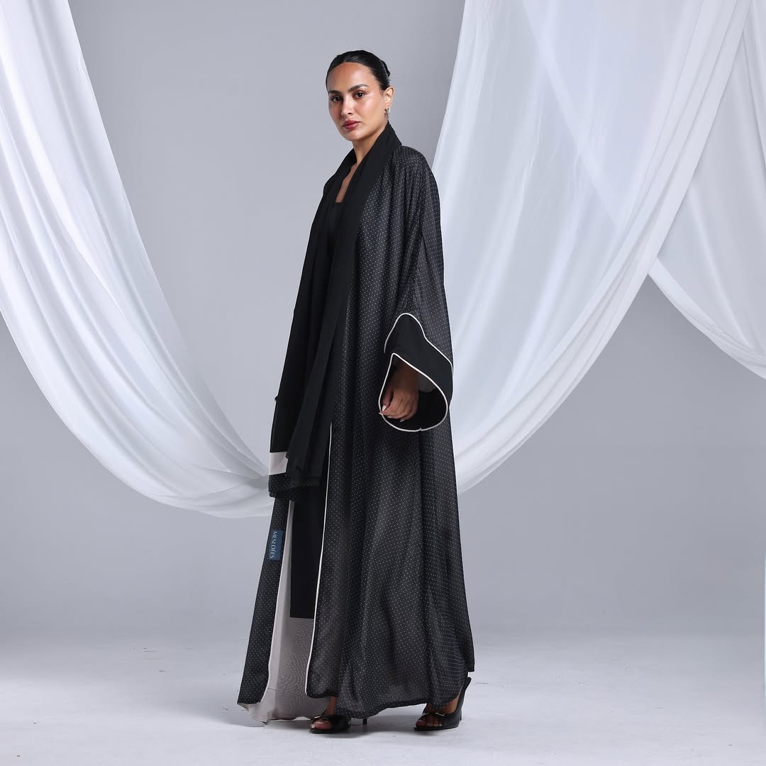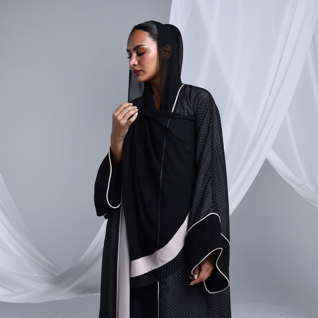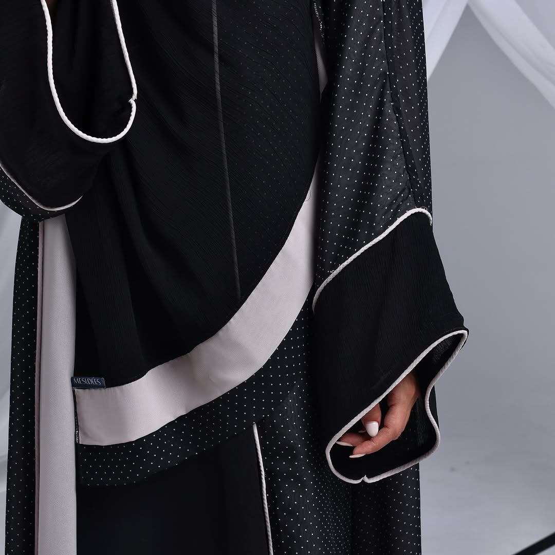 Minimalist Polka Dots Abaya — عباية سوداء بنقشة نقاط ناعمة