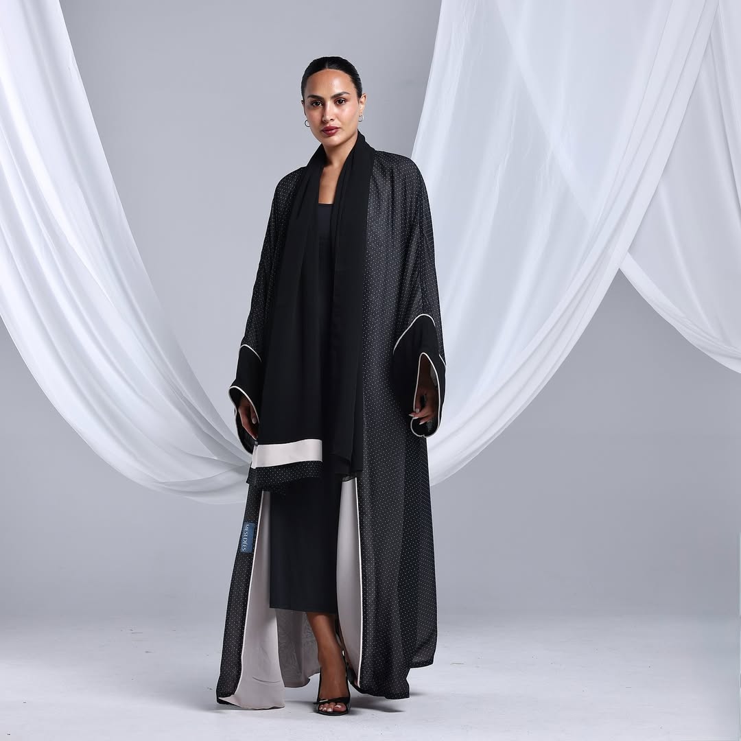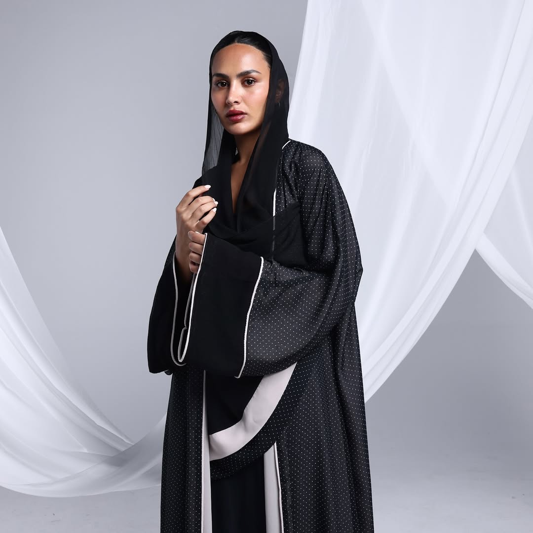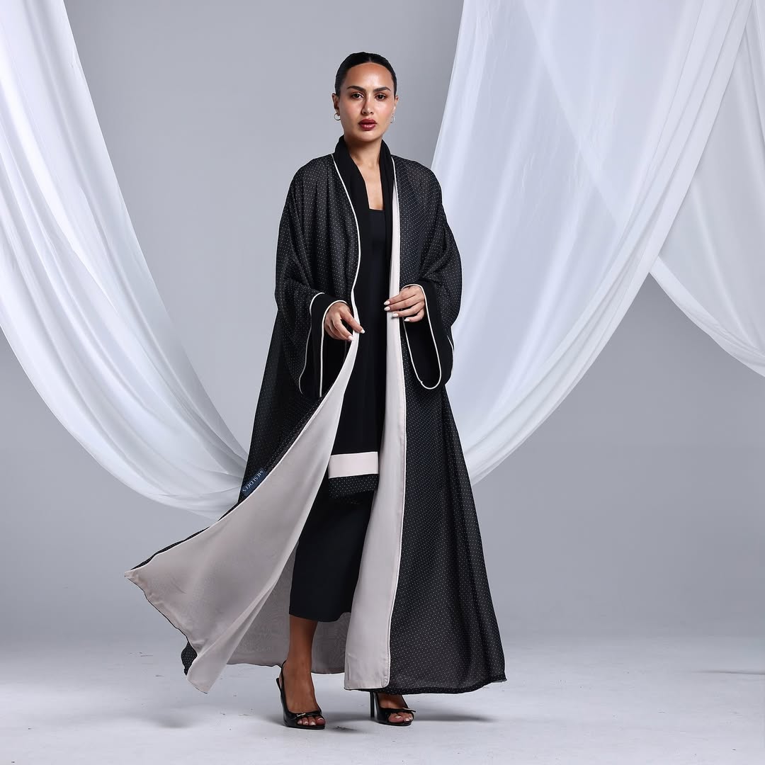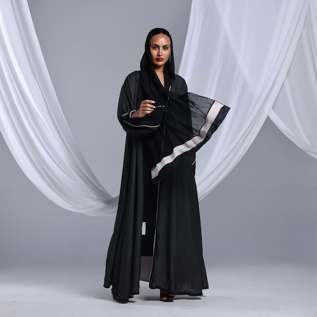 Minimalist Polka Dots Abaya — عباية سوداء بنقشة نقاط ناعمة