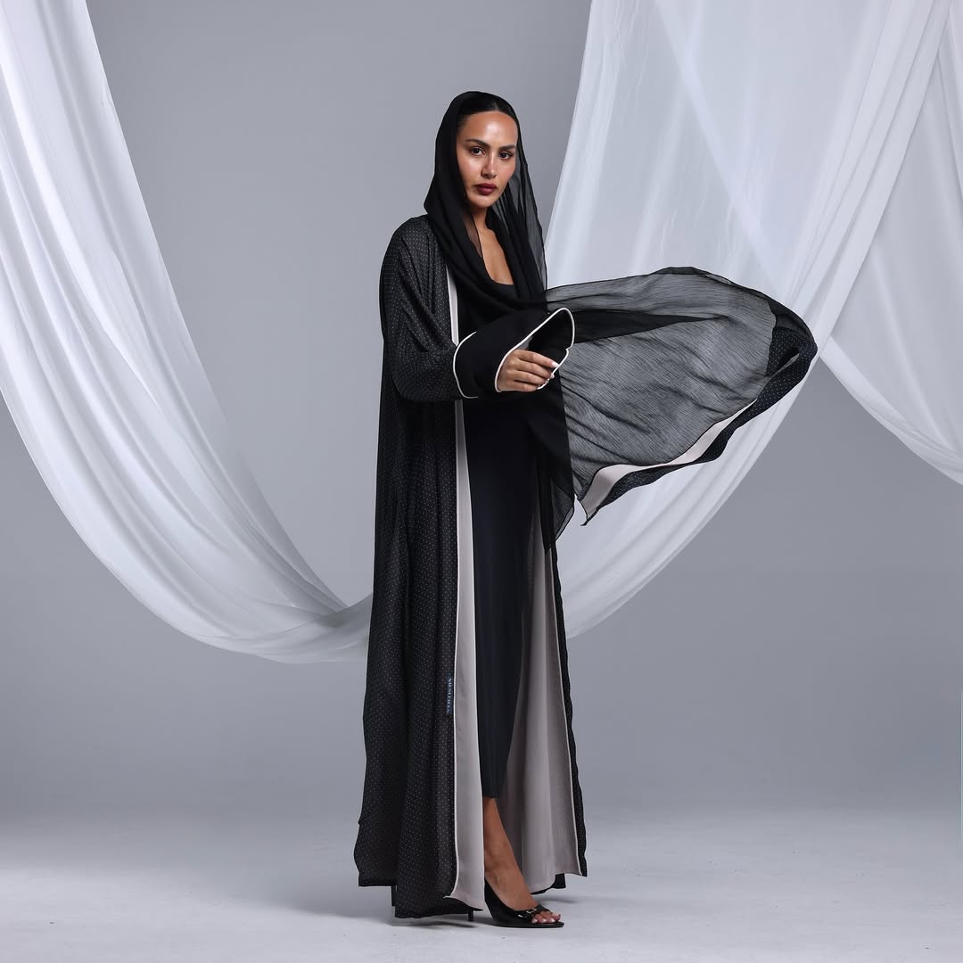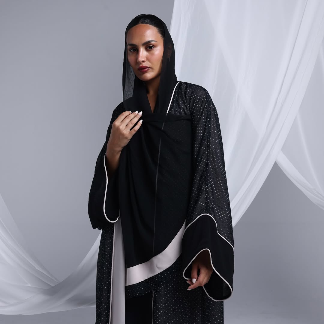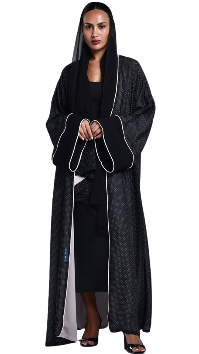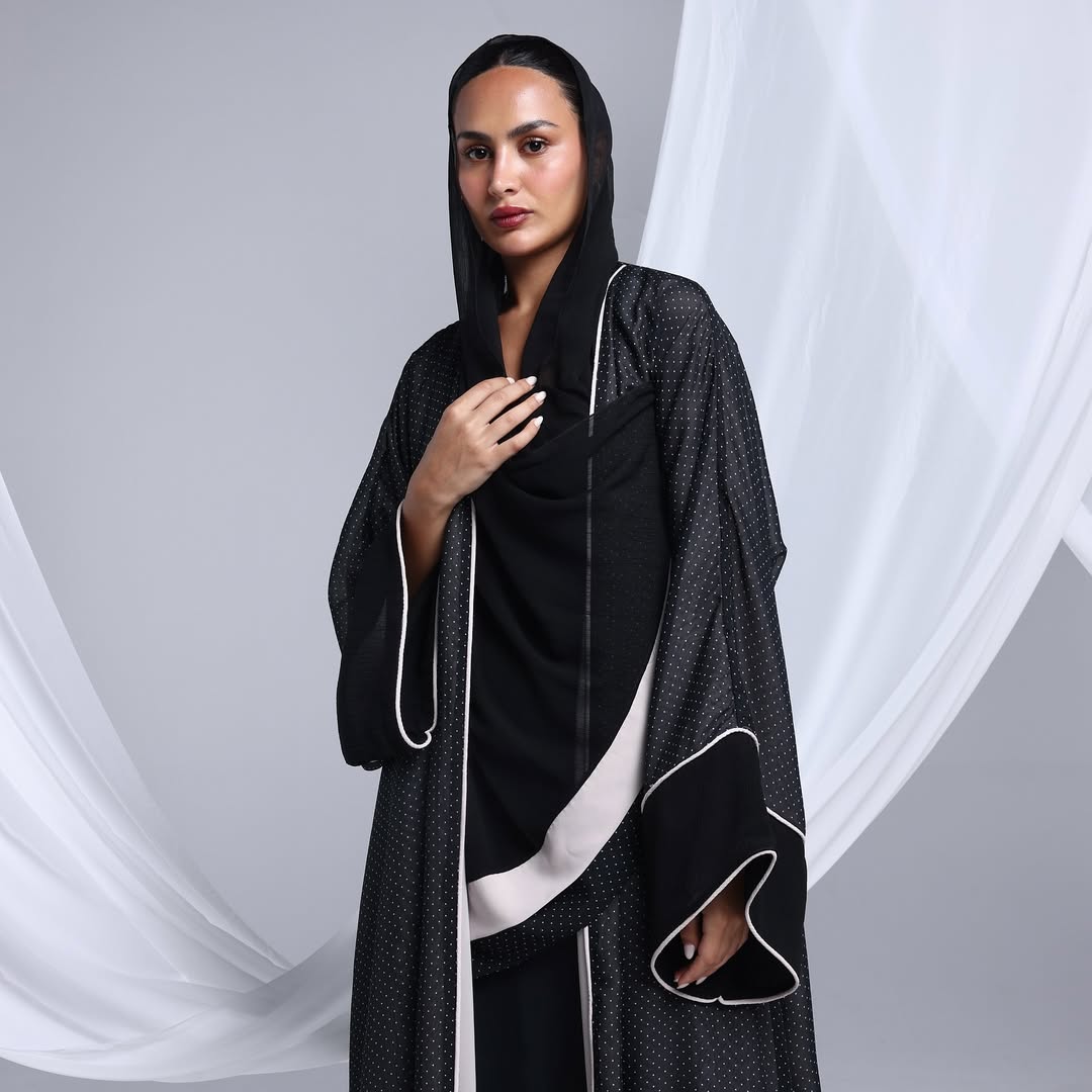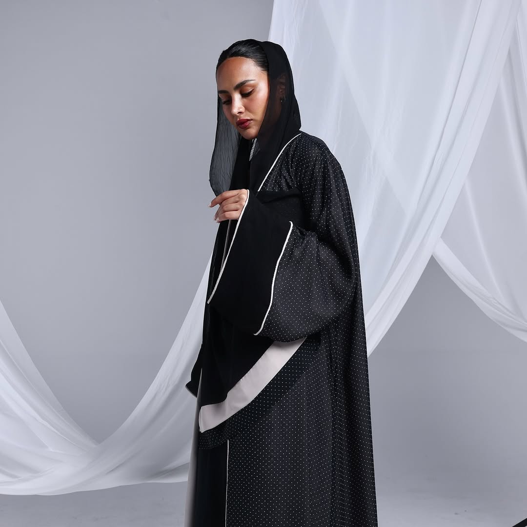 Minimalist Polka Dots Abaya — عباية سوداء بنقشة نقاط ناعمة
