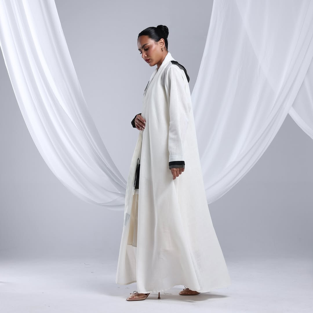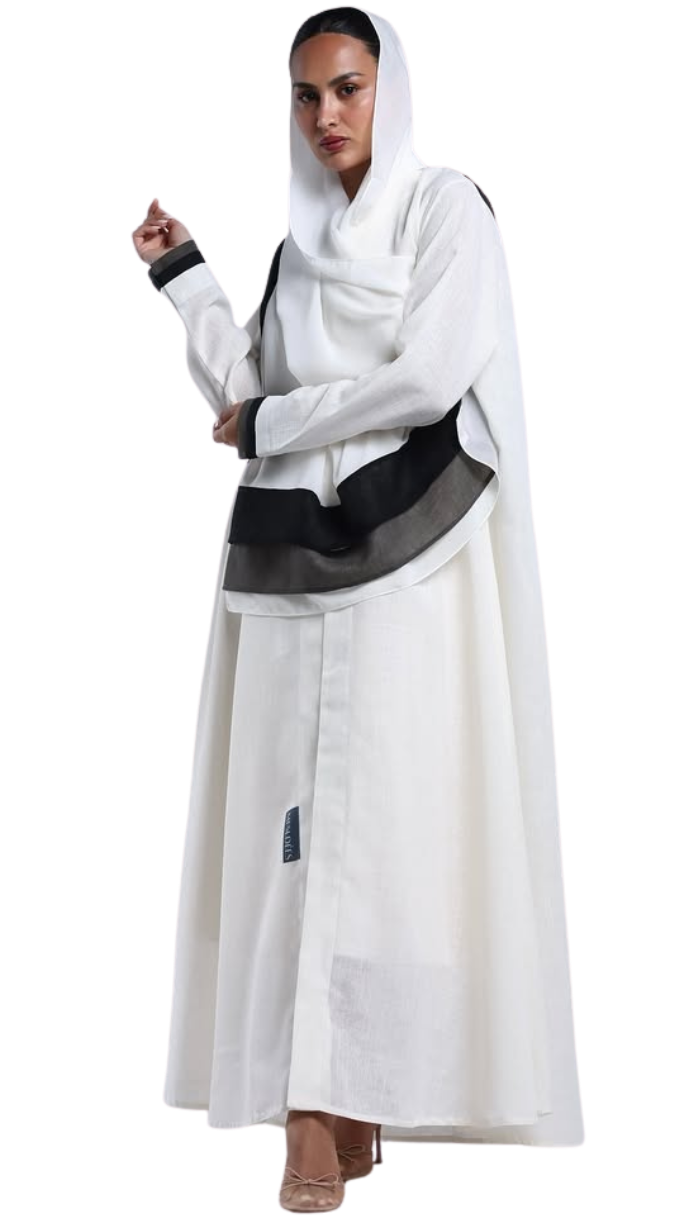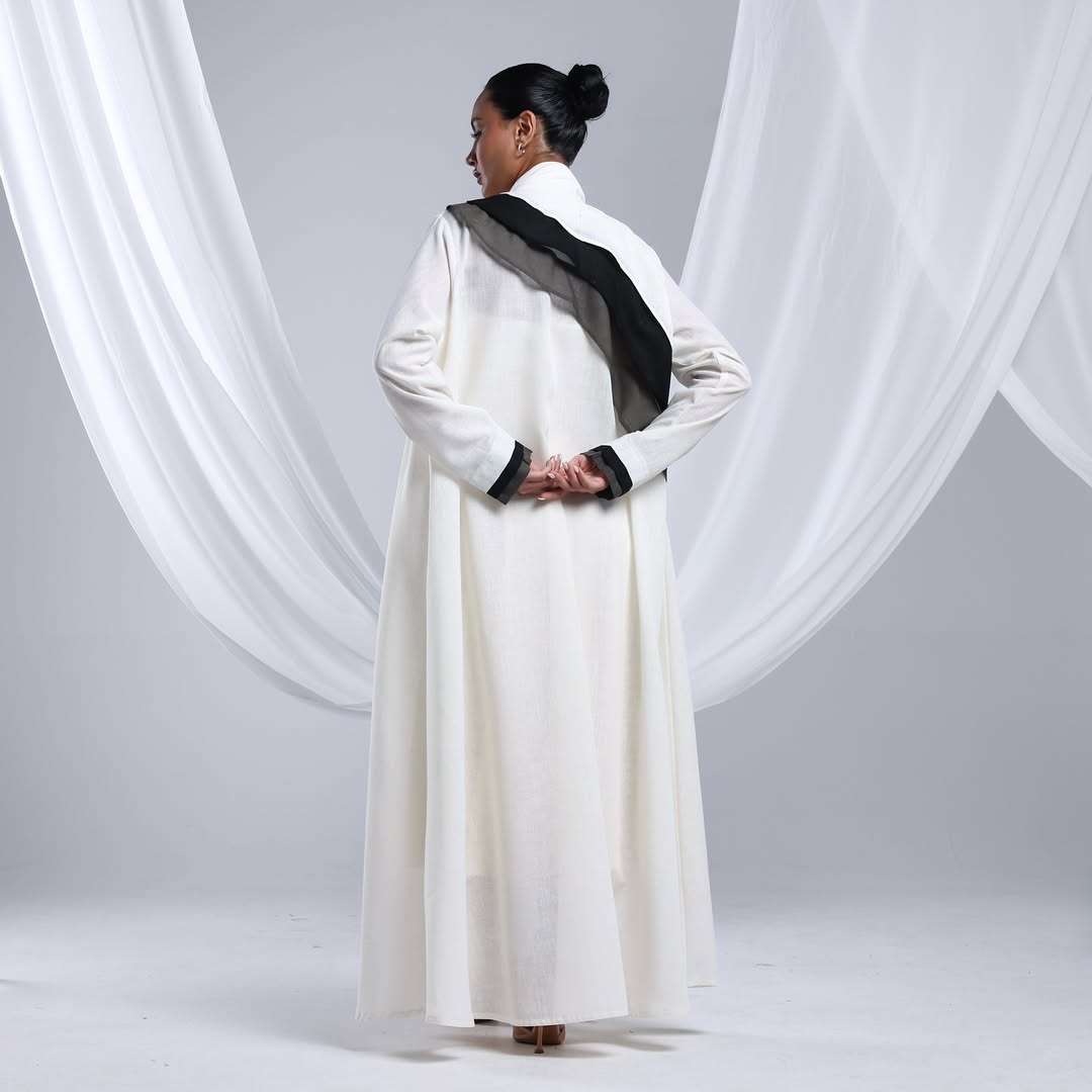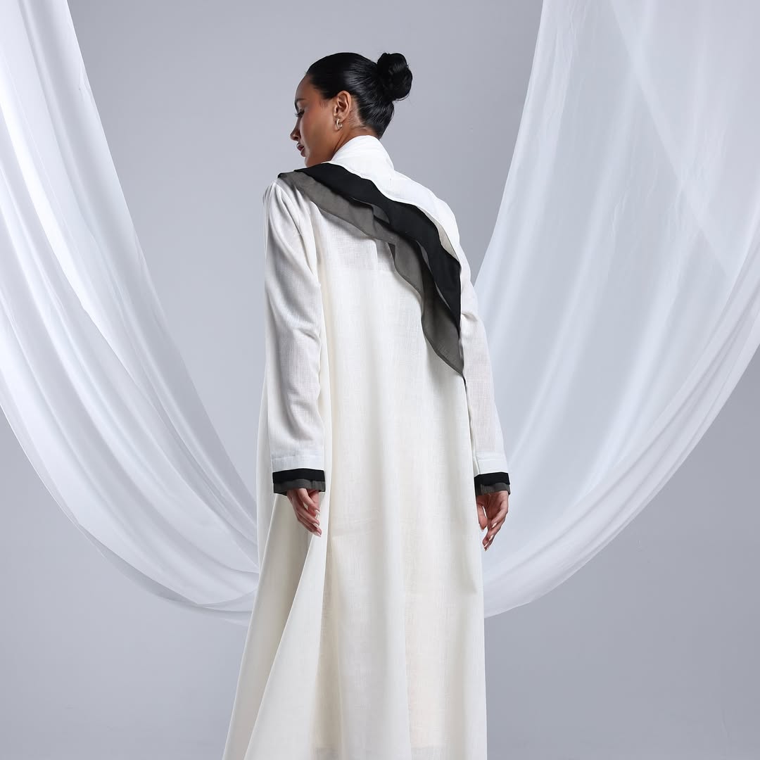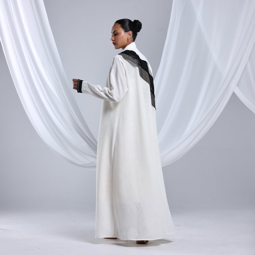 Linen Diagonal Overlay — عباية لينن أوف وايت بطبقة مائلة