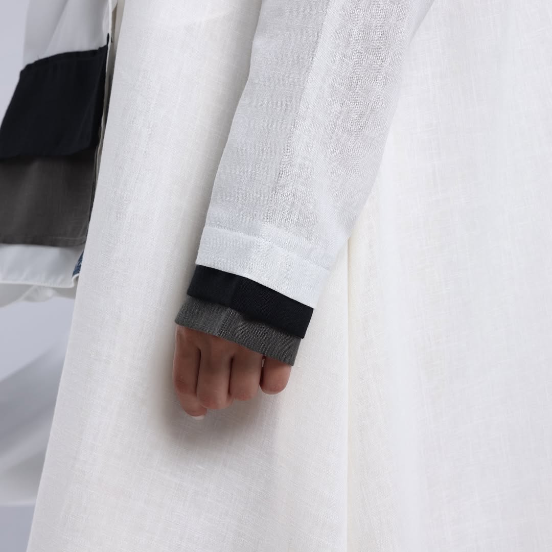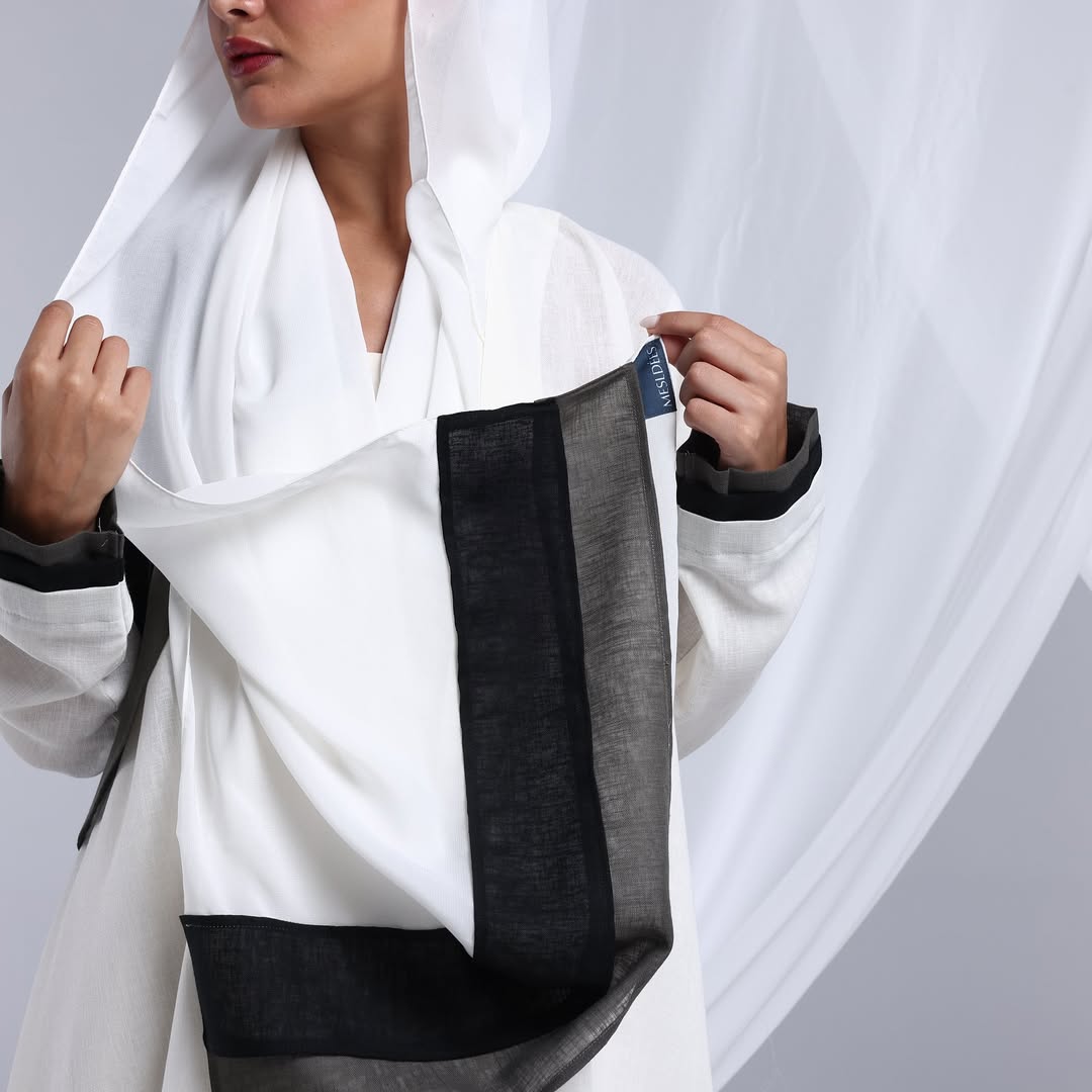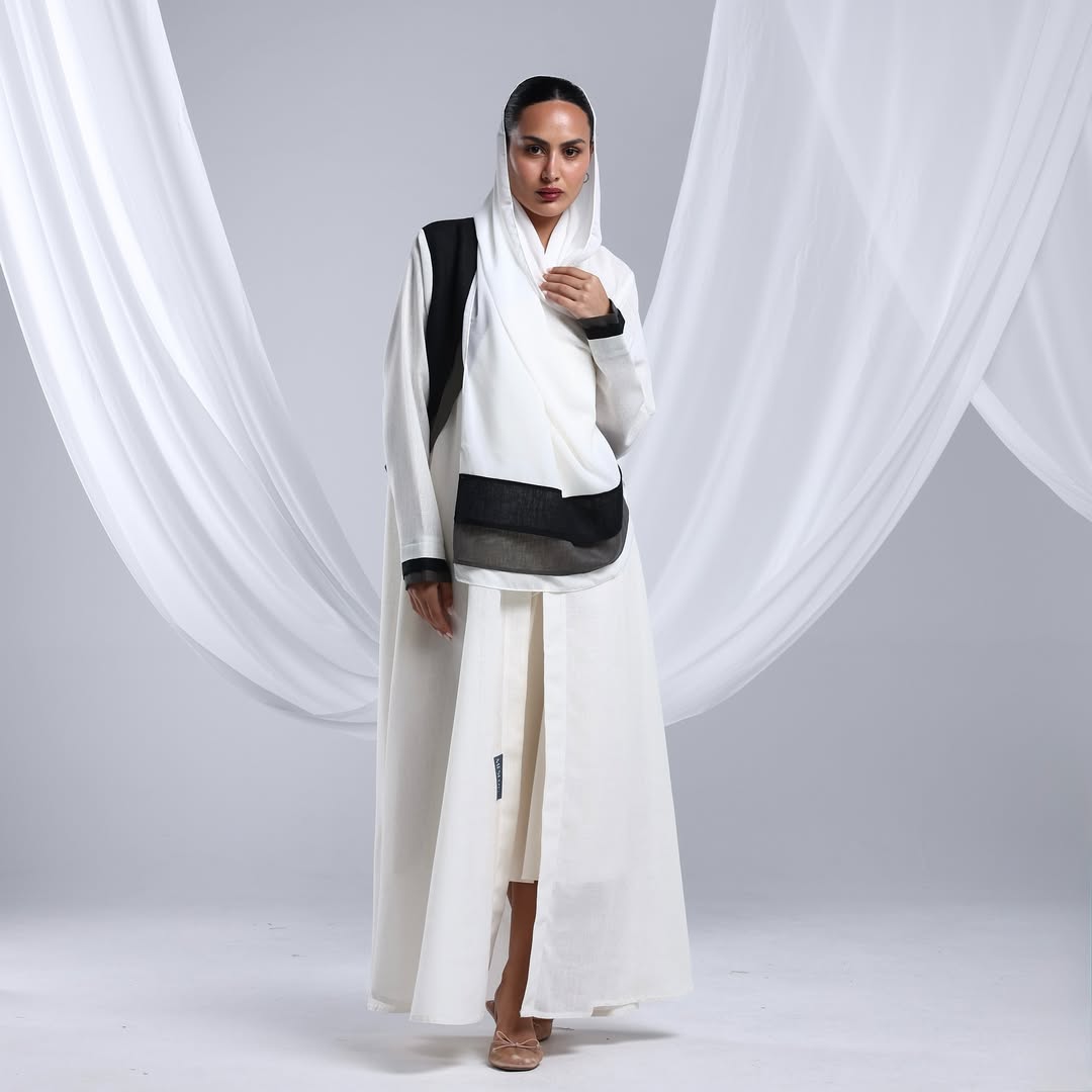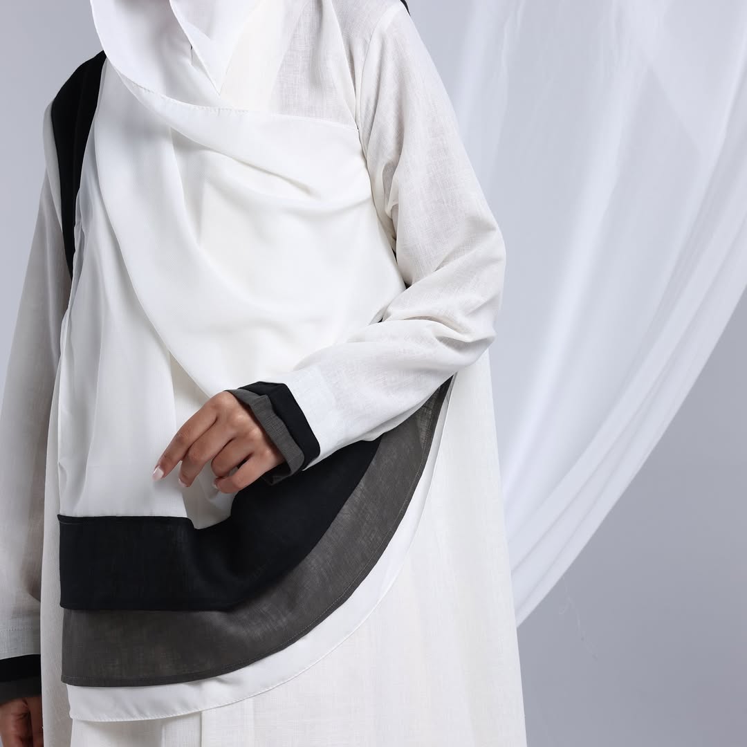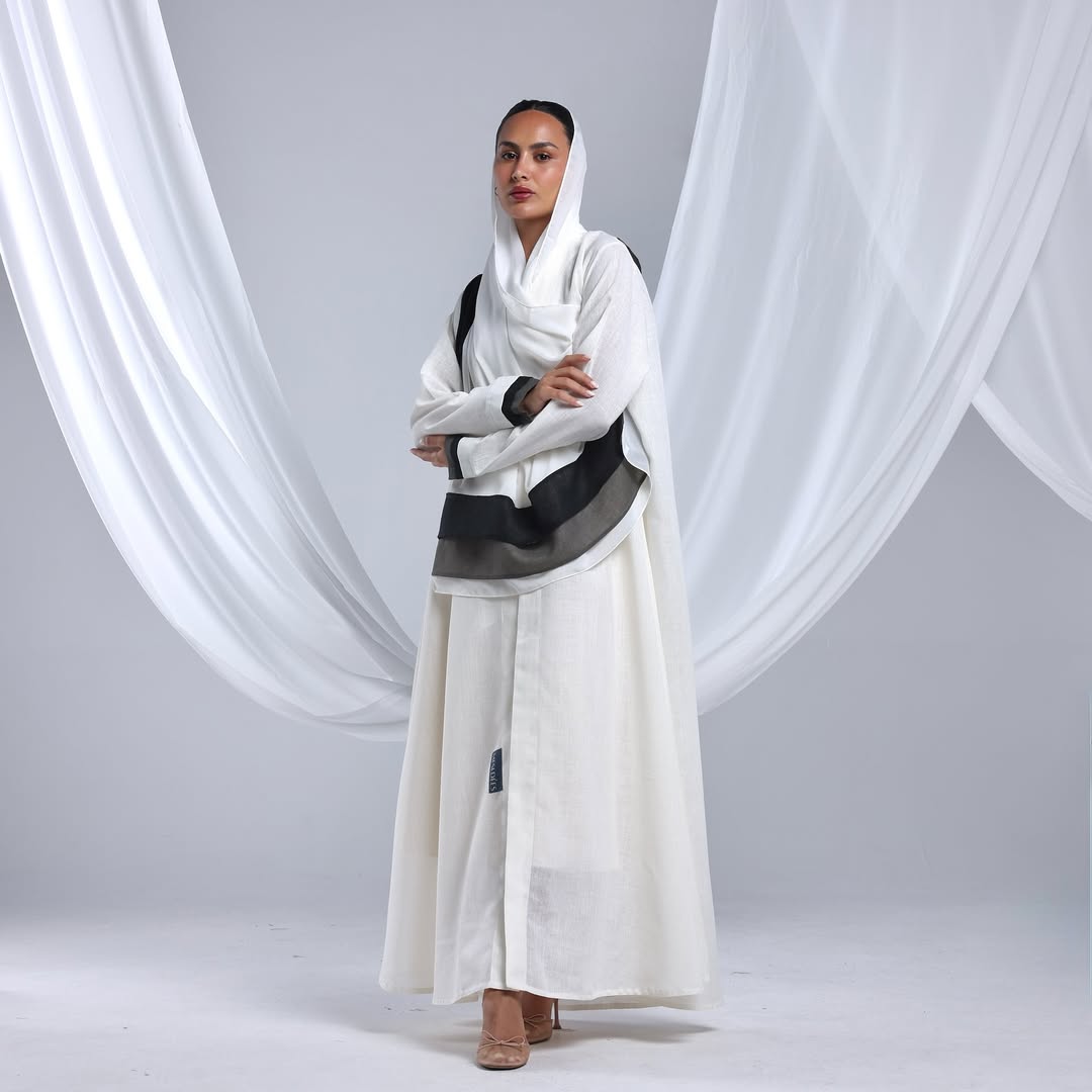 Linen Diagonal Overlay — عباية لينن أوف وايت بطبقة مائلة